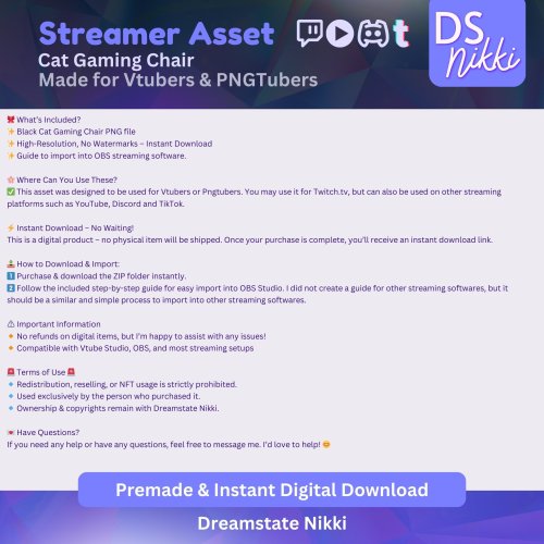 ✅ This asset was designed to be used for Vtubers or Pngtubers. You may use it for Twitch.tv, but can also be used on other streaming platforms such as YouTube, Discord and TikTok.