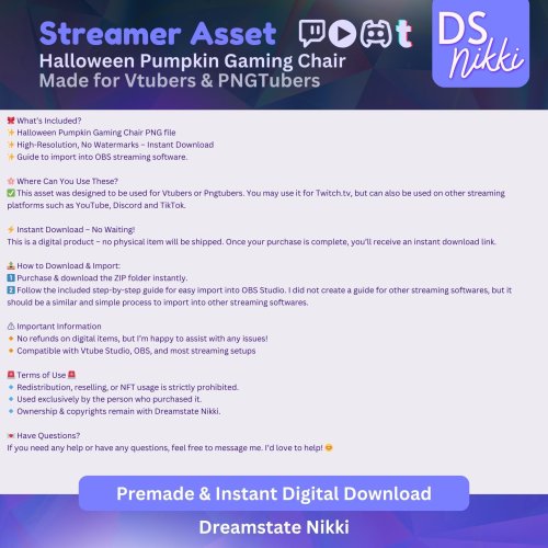 Whether you're decorating for a spooky stream or simply love pumpkins, this digital chair asset is ready to drop into your virtual space and elevate your aesthetic.